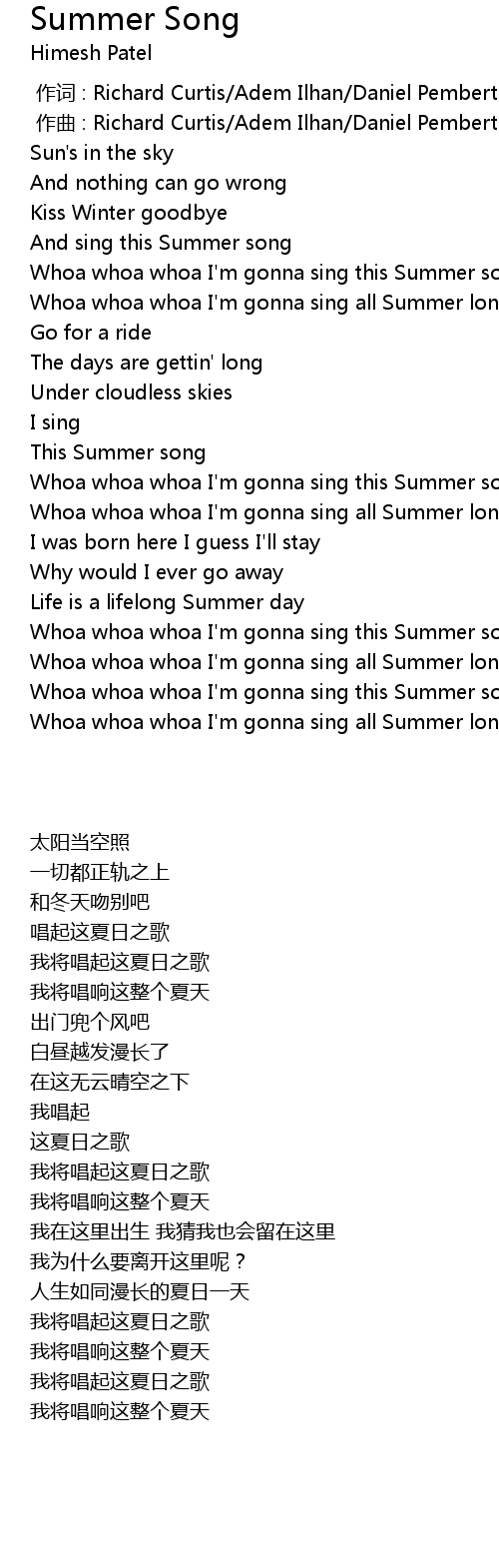 | [00:45.16] | Whoa whoa whoa I'm gonna sing this Summer song |