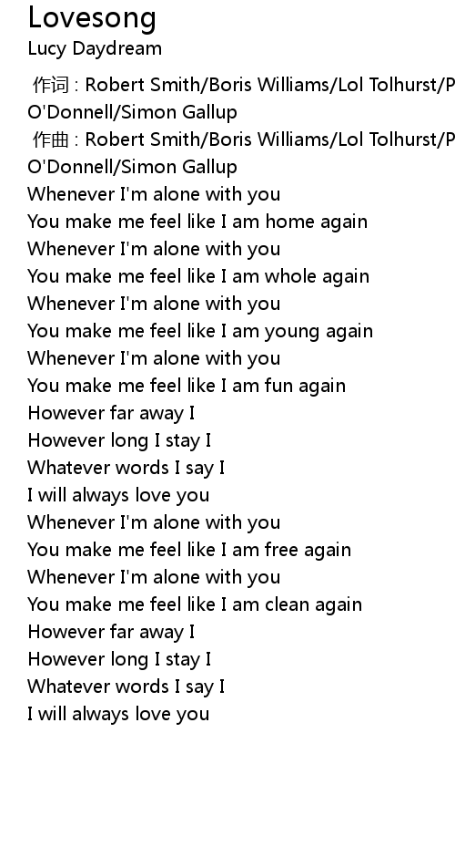 | [00:00.00] | 作词 : Robert Smith/Boris Williams/Lol Tolhurst/Porl Thompson/Roger O'Donnell/Simon Gallup |