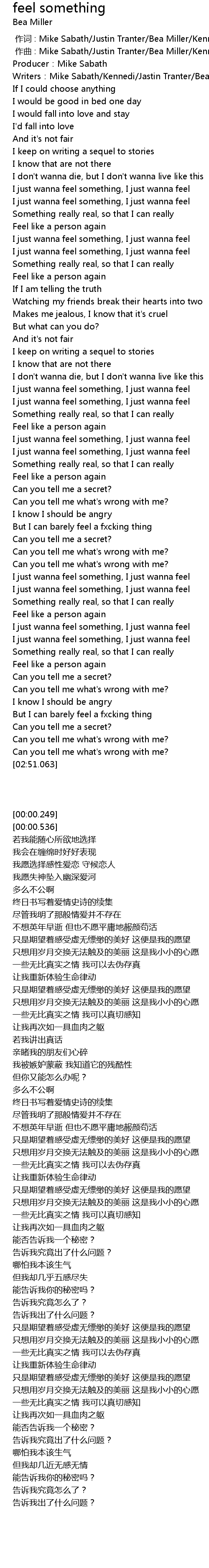 | [00:34.286] | I just wanna feel something, I just wanna feel |