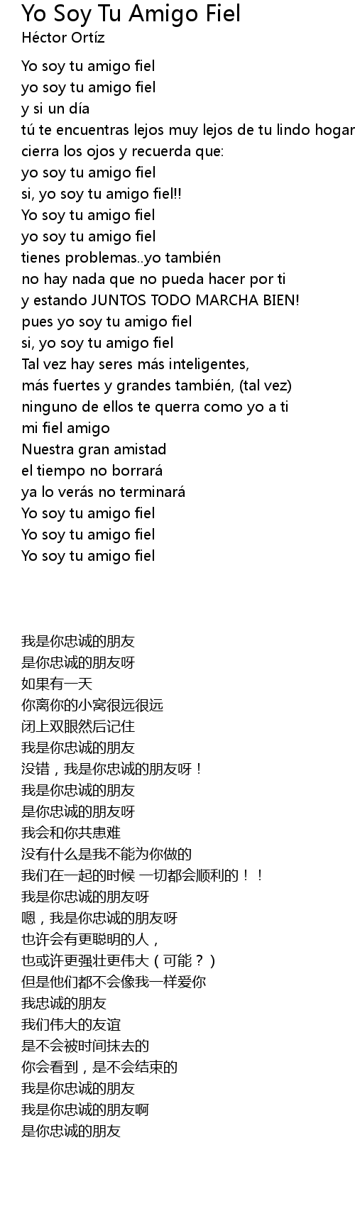 | [01:08.000] | si, yo soy tu amigo fiel |