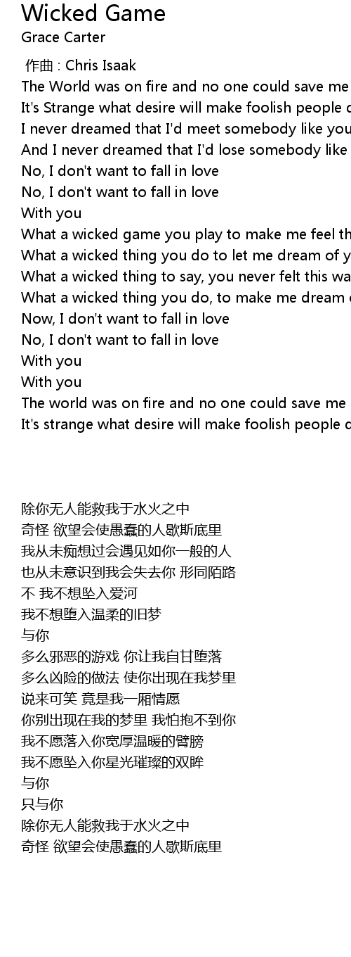 | [01:14.11] | What a wicked game you play to make me feel this way |