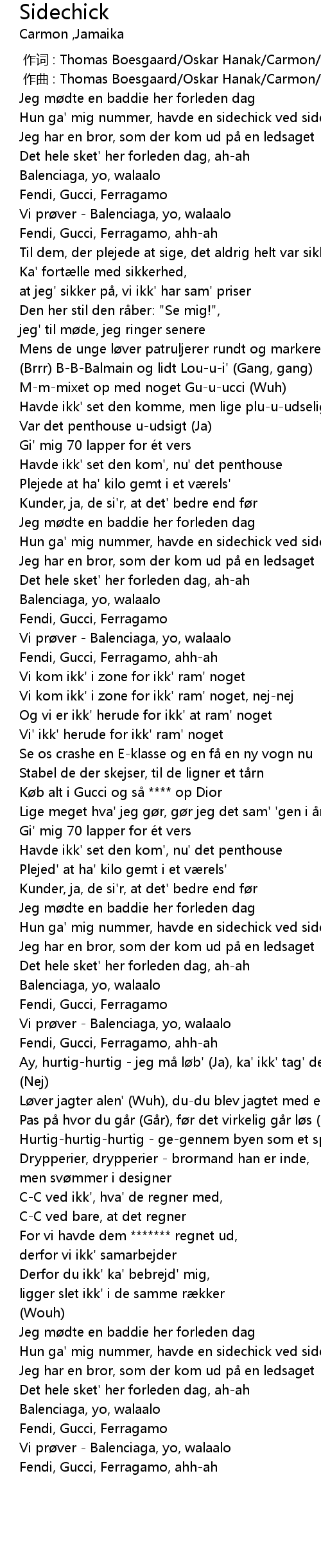 | [00:27.95] | Vi prøver - Balenciaga, yo, walaalo |