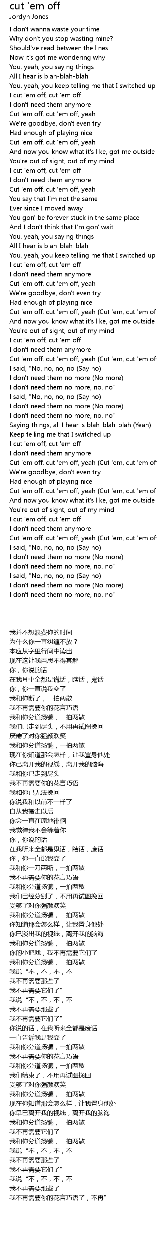 Cut 'em off, cut 'em off, yeah (Cut 'em, cut 'em off, yeah) |
