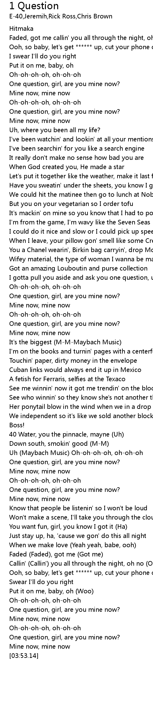 One question, girl, are you mine now? |