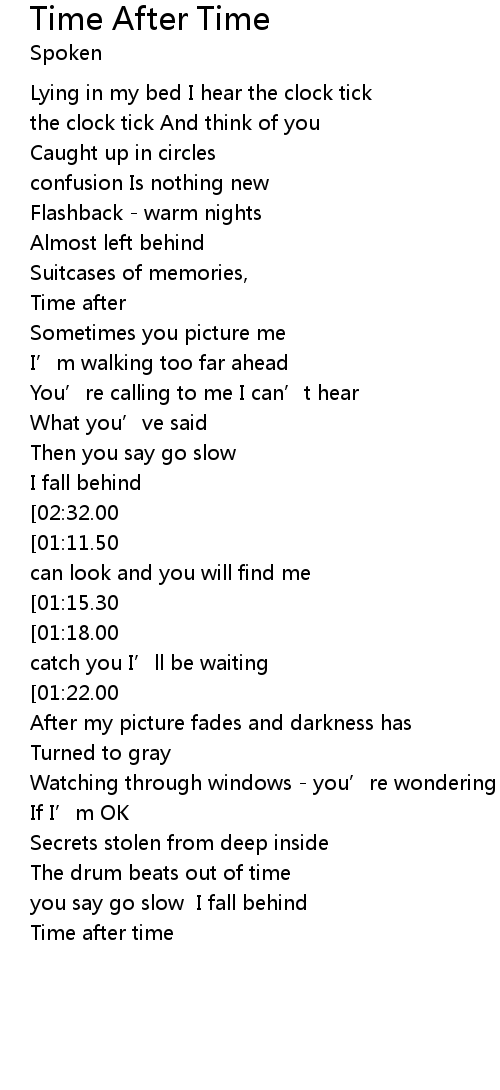 | [01:03.00][01:15.30][01:50.00][02:03.50][02:39.00][02:52.00] | Time after time |