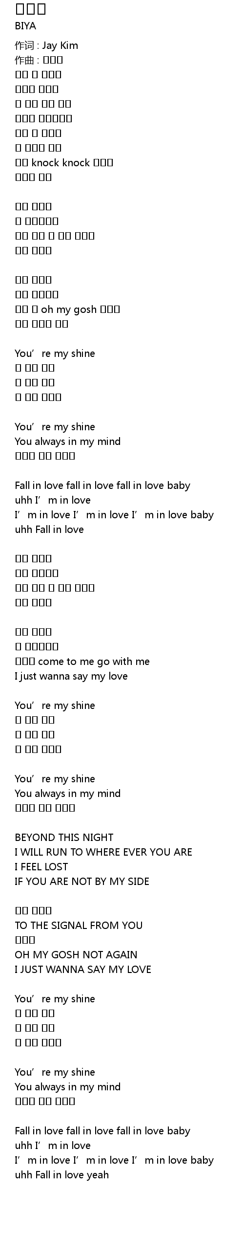 | 作词 : Jay Kim | |