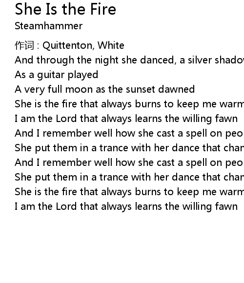 | Song | She Is the Fire |