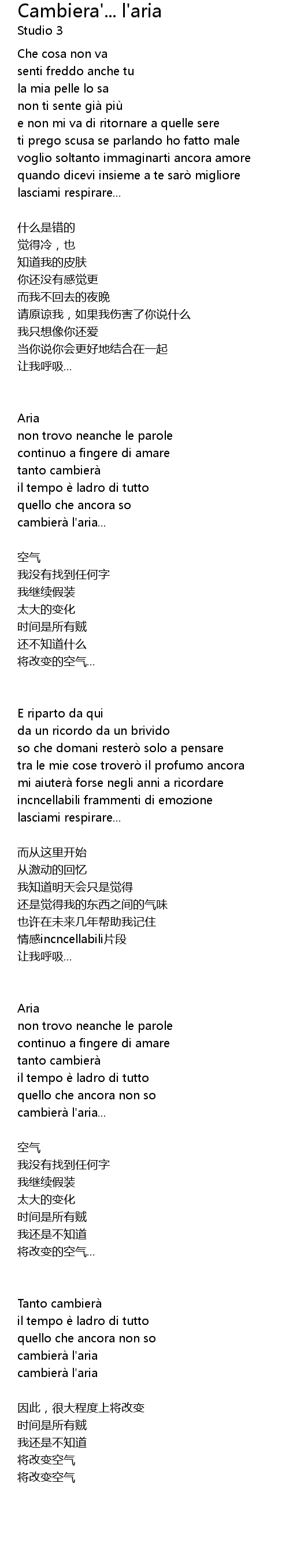 | cambierà l' aria | |