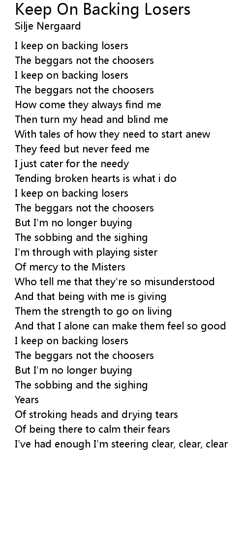 I keep on backing losers |