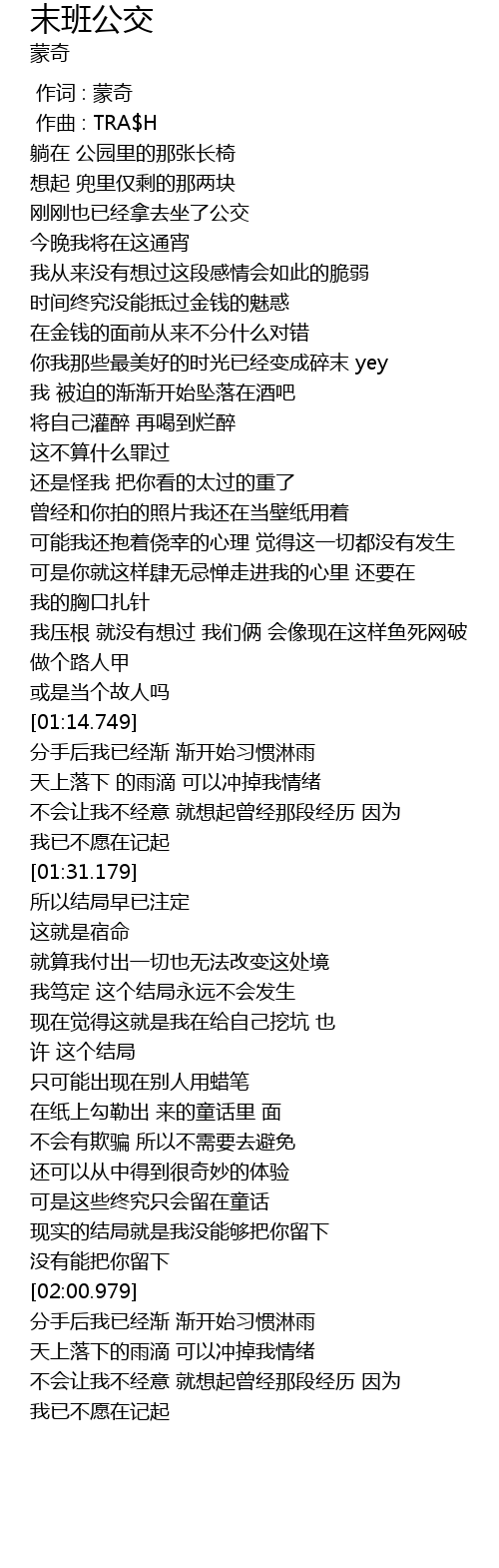 | [00:32.519] | 想起 兜里仅剩的那两块 |