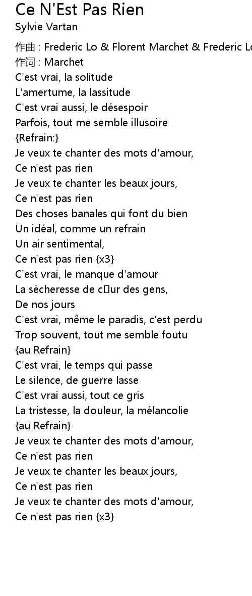 | Je veux te chanter des mots d' amour, | |