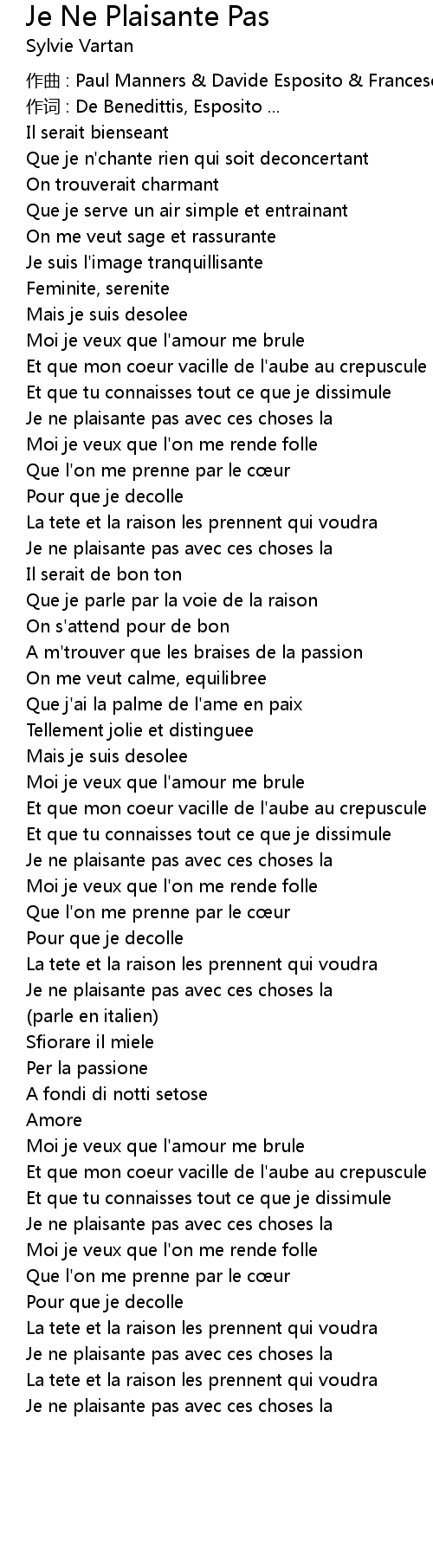 | Que je n' chante rien qui soit deconcertant | |