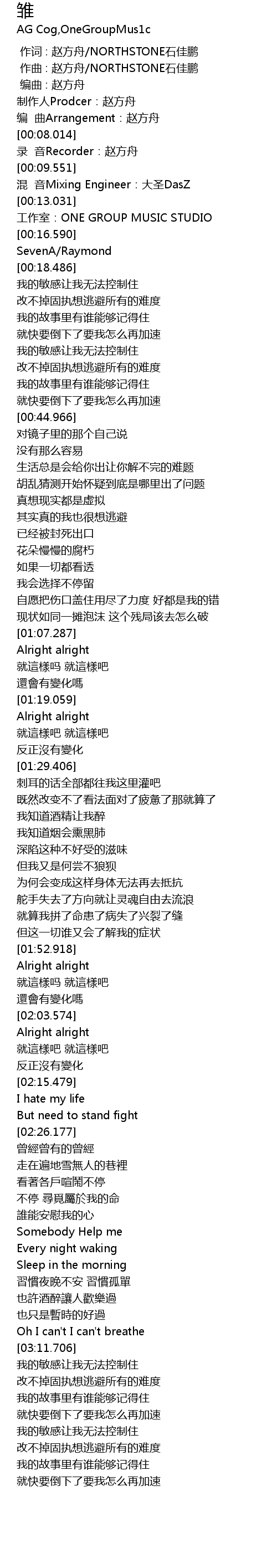 | [00:11.535] | hun yin Mixing Engineer: da sheng DasZ |