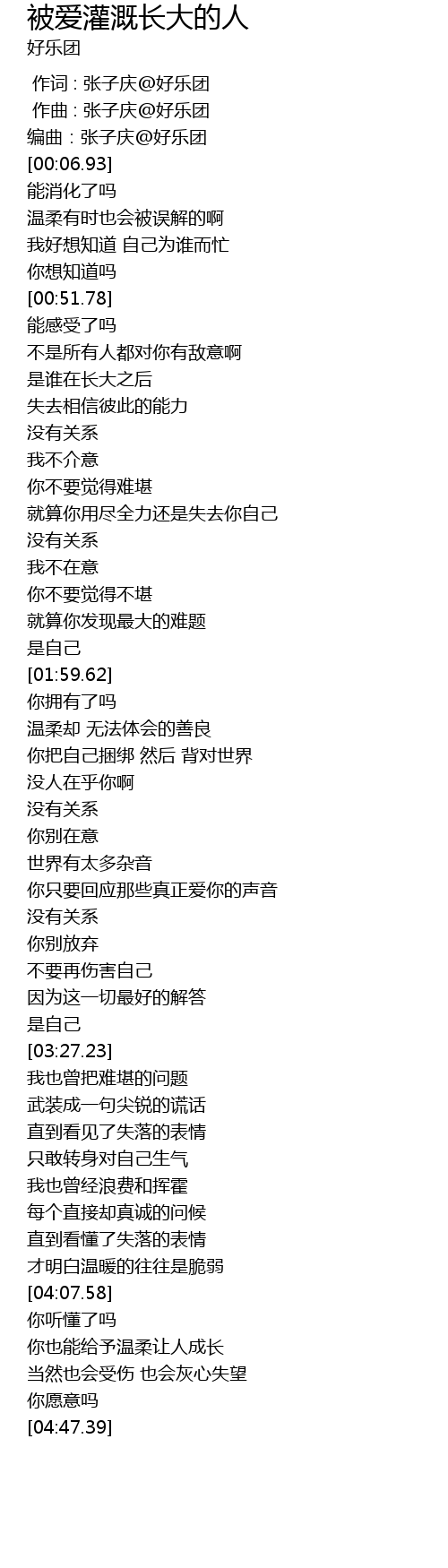 | [00:00.00] | 作词 : 张子庆@好乐团 |