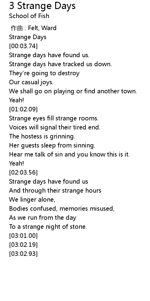 | [00:02.33] | Strange Days |