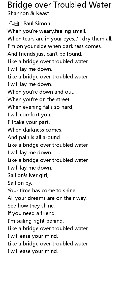 | [01:11.428] | Like a bridge over troubled water |