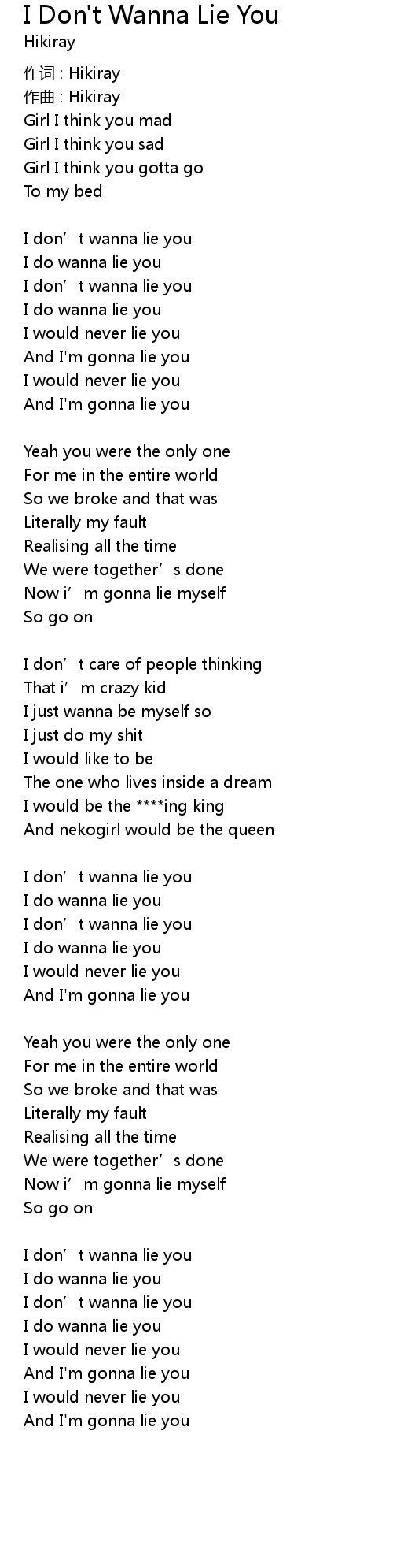 | I don' t wanna lie you | |