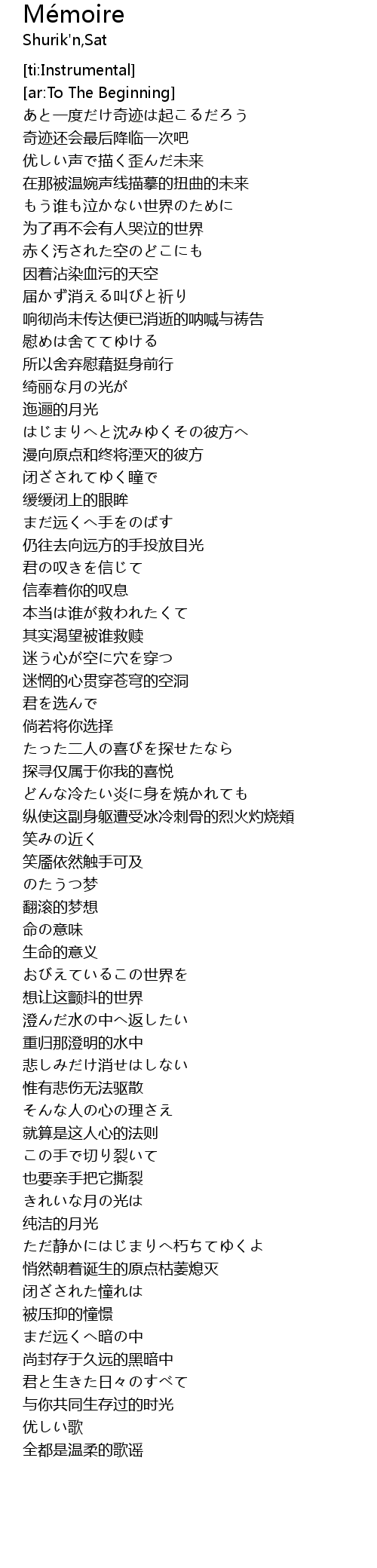 | [03:09.560] | ただ静かにはじまりへ朽ちてゆくよ |