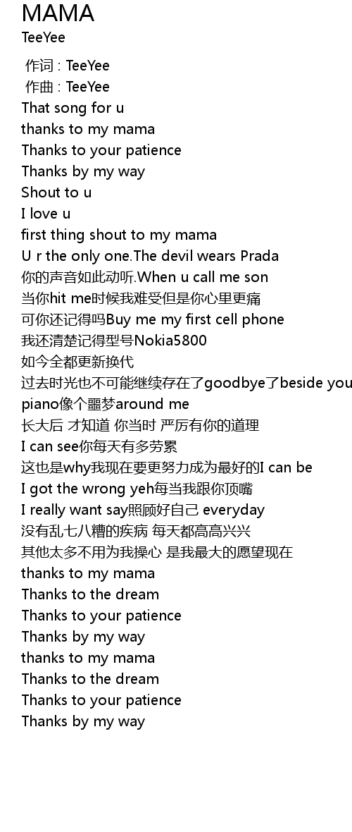 | [00:07.40] | thanks to my mama |