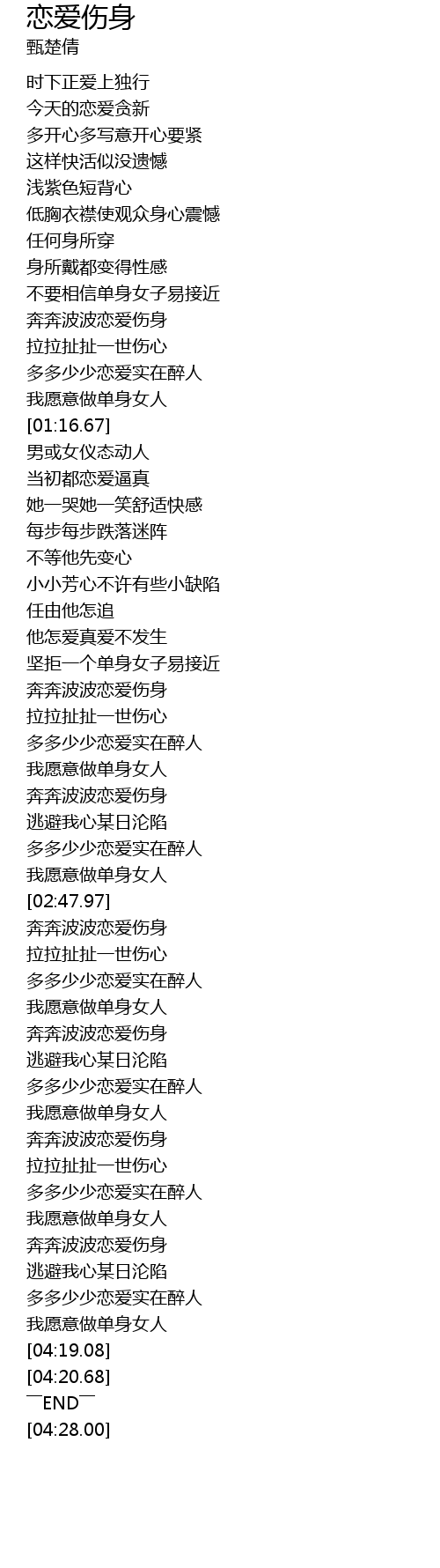 | [00:59.58] | 奔奔波波恋爱伤身 |