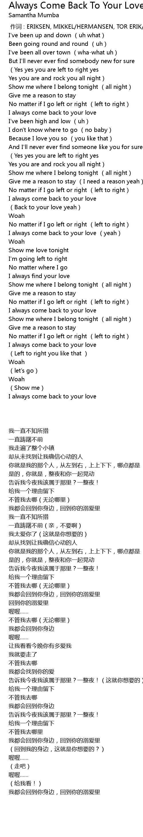 | [01:37.75] | Give me a reason to stay (I need a reason yeah) |