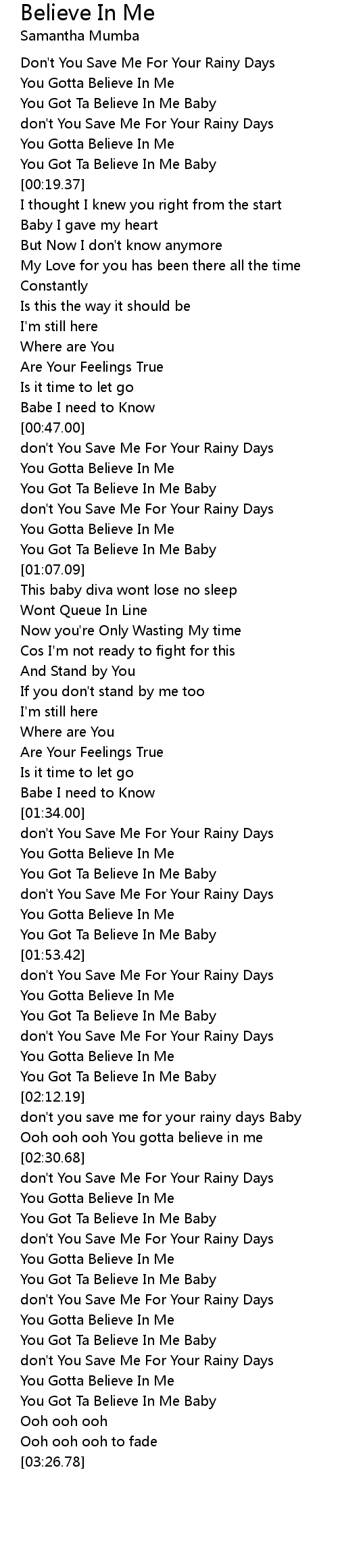 [02:23.56] Ooh ooh ooh You gotta believe in me