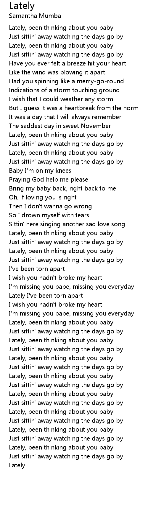 Lately, been thinking about you baby |
