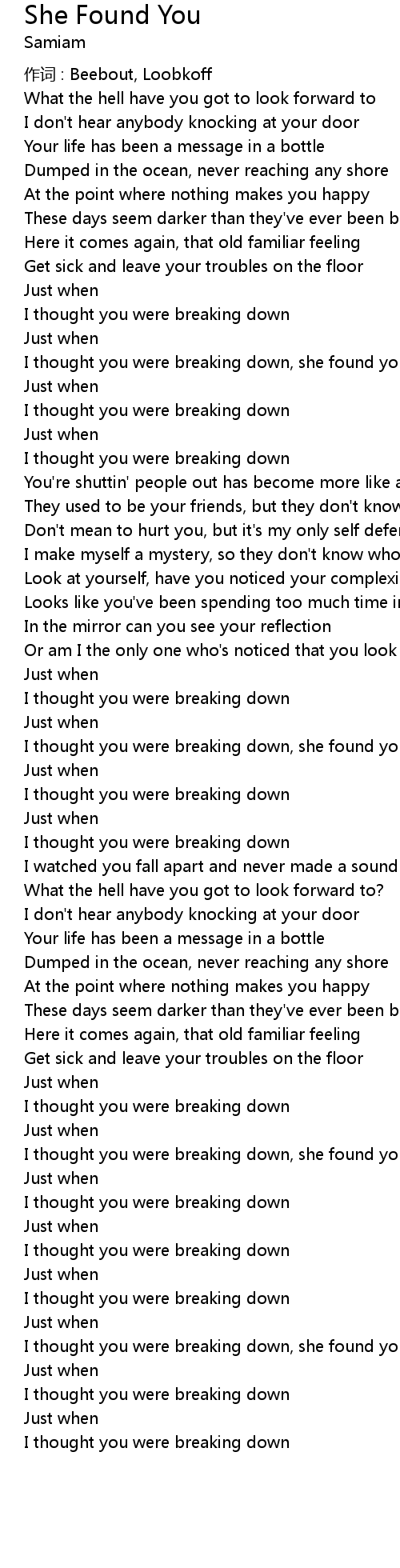 | I thought you were breaking down, she found you | |