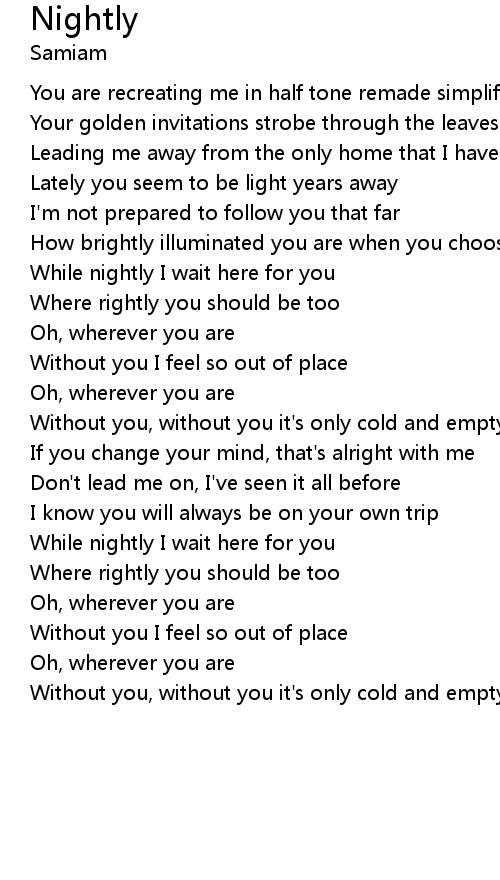 | Without you I feel so out of place | |