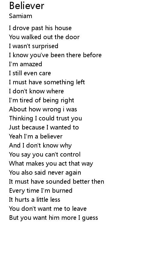 Yeah I'm a believer |