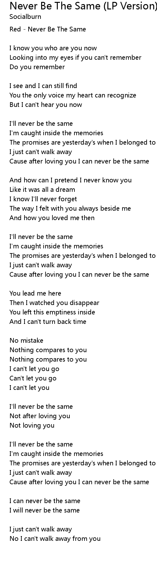Red - Never Be The Same |