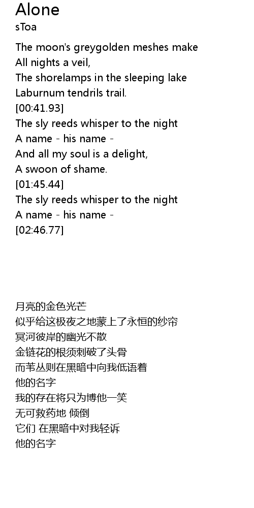 | [01:04.19] | The sly reeds whisper to the night |