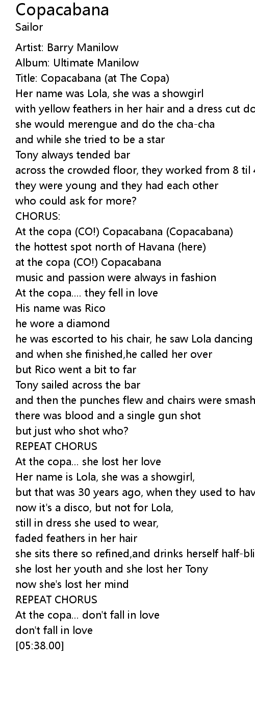 Title: Copacabana (at The Copa) |
