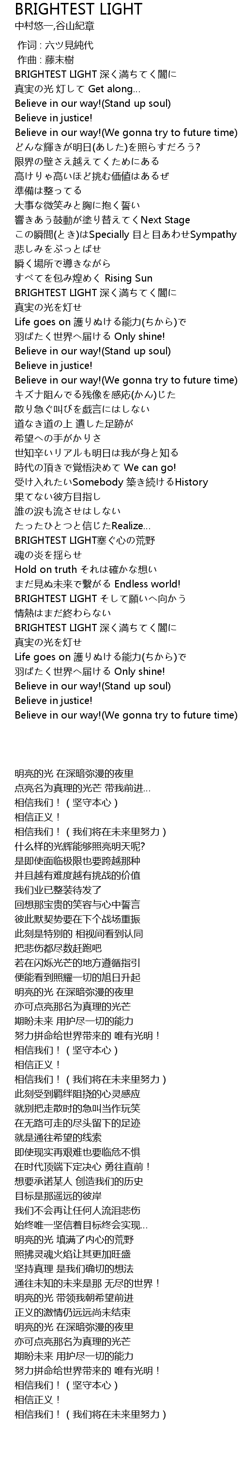 | [02:43.00] | BRIGHTEST LIGHT そして願いへ向かう |