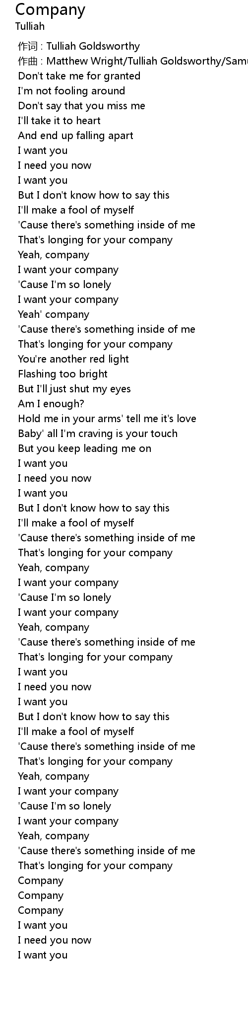 | [01:01.186] | I want your company |