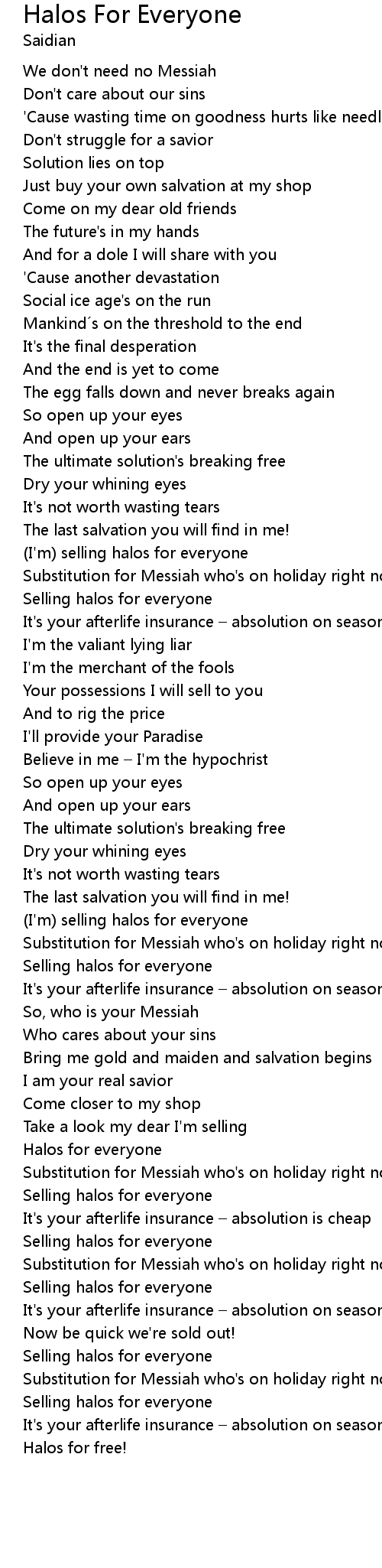 | Song | Halos For Everyone |