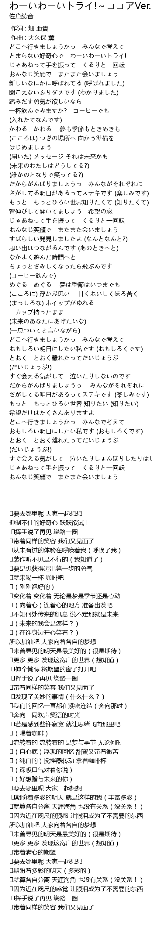| Song | わーいわーいトライ!~ココアVer.~ |