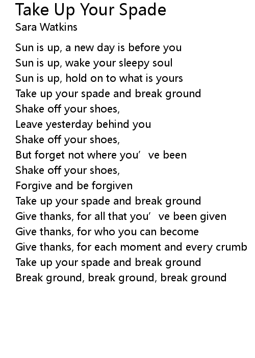 | Song | Take Up Your Spade |