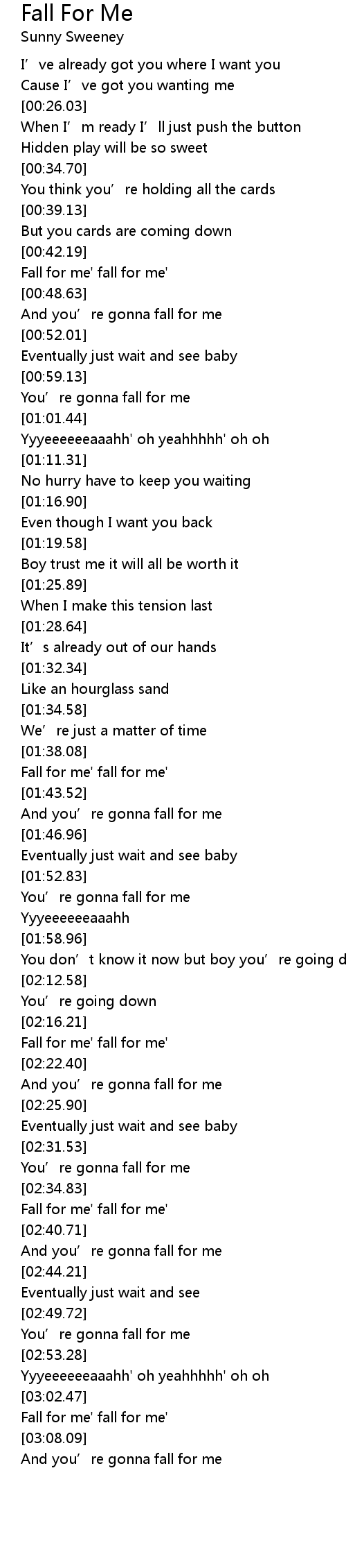 | [03:05.09] | Fall for me' fall for me' |