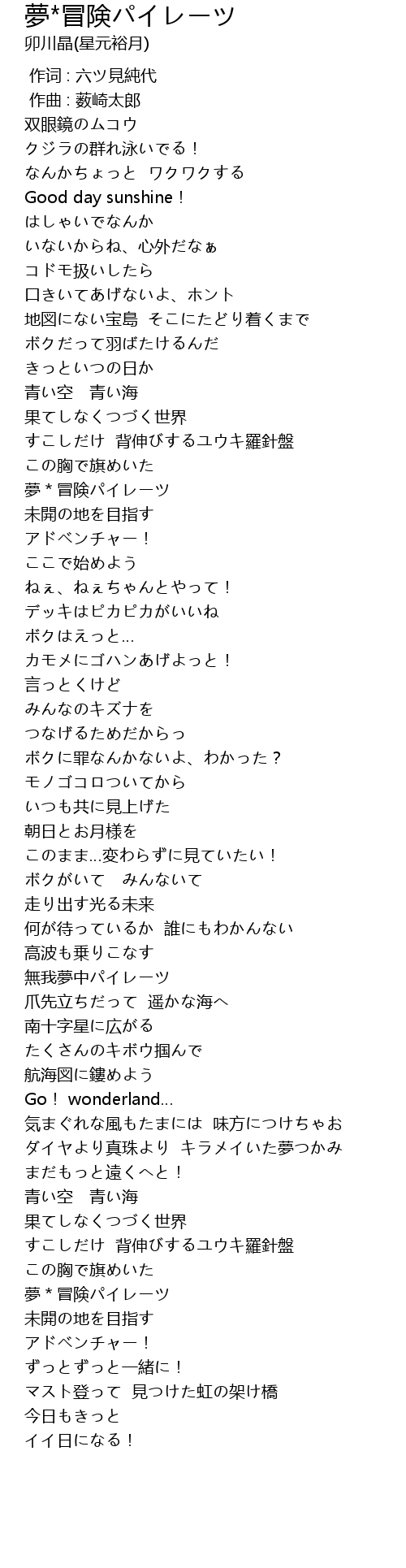 | [03:56.0] | マスト登って 見つけた虹の架け橋 |