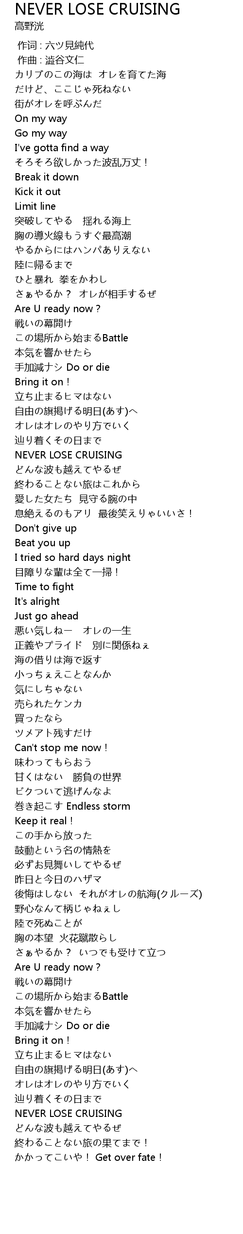 | [03:01.00] | 後悔はしない それがオレの航海(クルーズ) |
