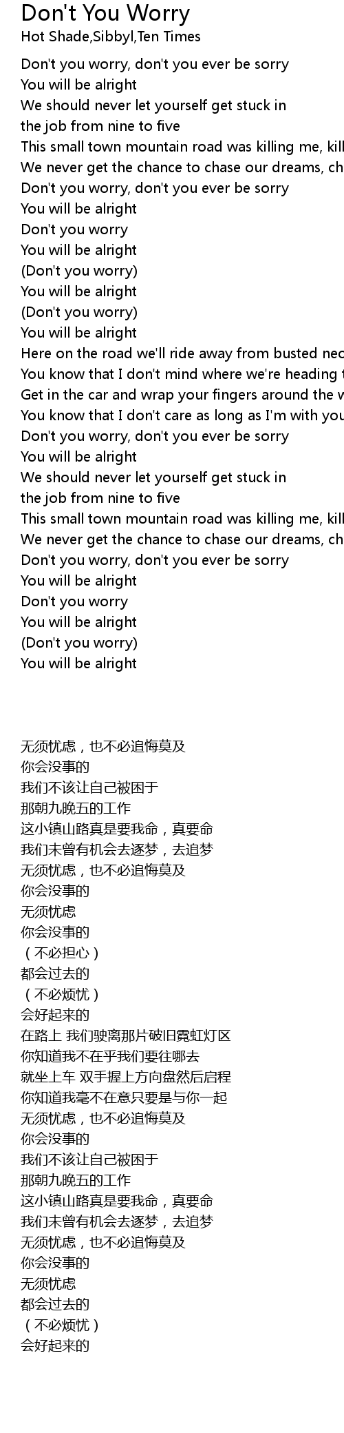 | [00:08.56] | Don't you worry, don't you ever be sorry |