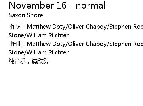 | [00:01.000] | zuò qǔ : Matthew Doty Oliver Chapoy Stephen Roessner Matthew Stone William Stichter |