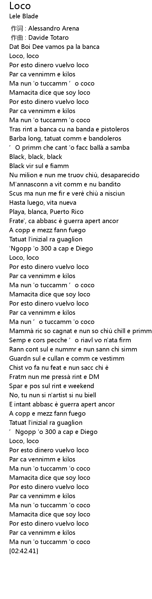 | [02:39.54] | Ma nun 'o tuccamm 'o coco |