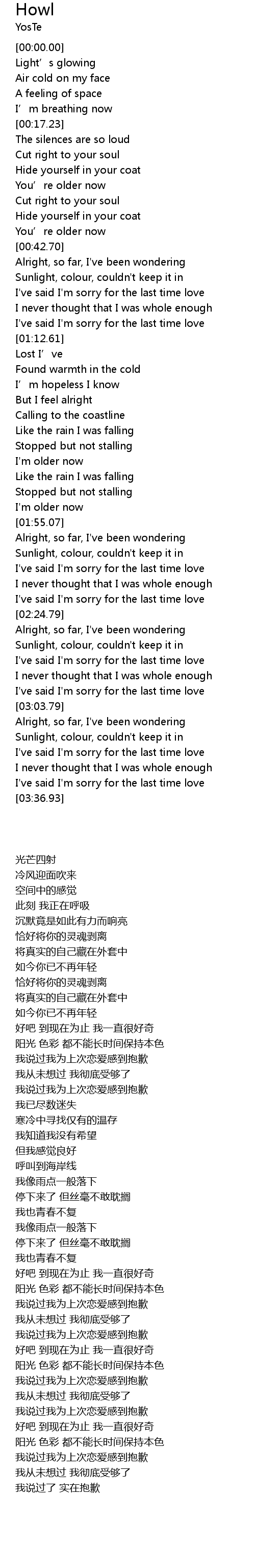 | [03:16.19] | Sunlight, colour, couldn' t keep it in |