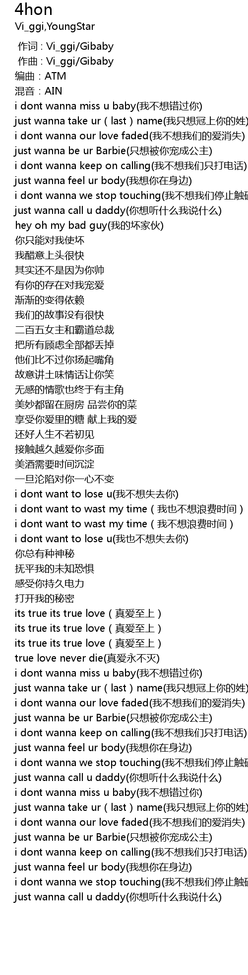 | [02:19.743] | just wanna call u daddy(你想听什么我说什么) |
