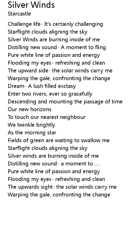 Silver winds are burning inside of me |