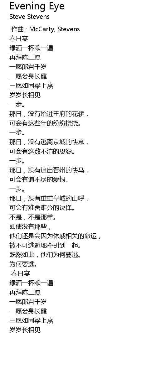 | Song | Evening Eye |