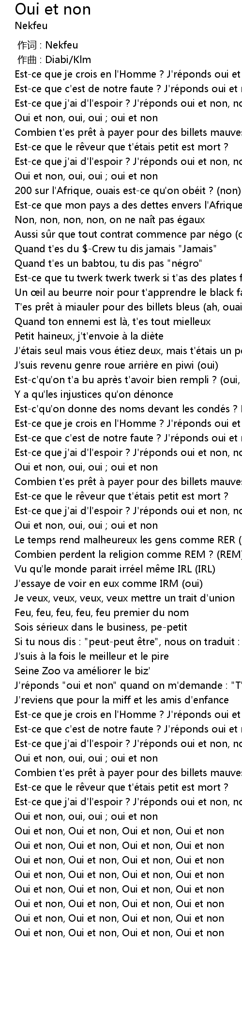 | [02:50.13] | Oui et non, Oui et non, Oui et non, Oui et non |