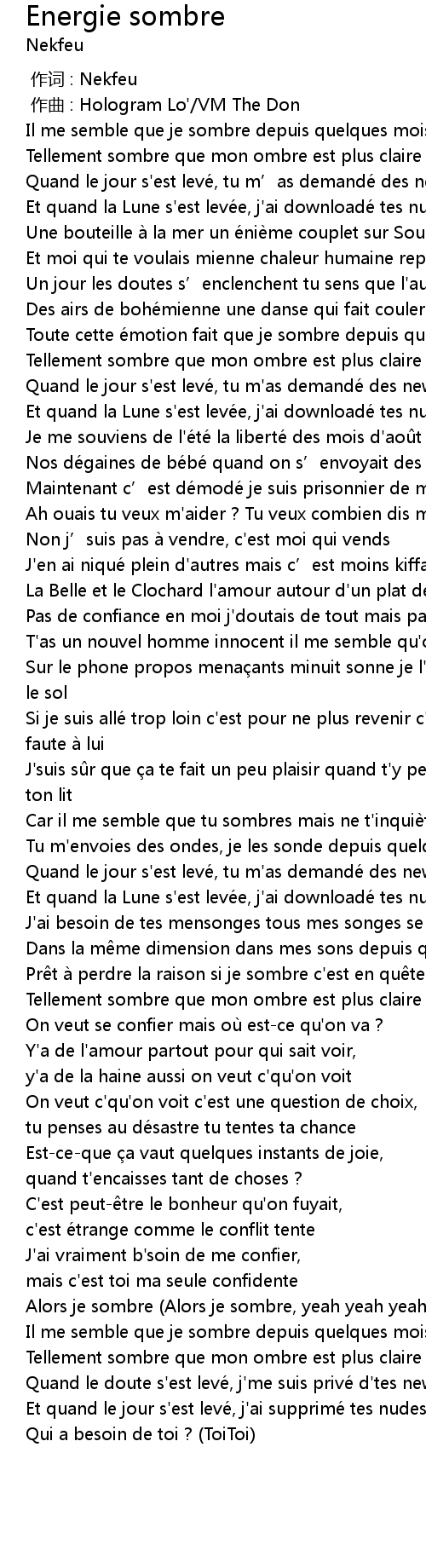 | [02:41.64] | Tellement sombre que mon ombre est plus claire que moi |